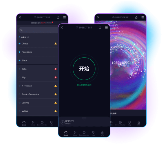 我们在 Speedtest by Ookla® 的使命,便是提供有关实际互联网速度的数据和见解,进而促进提升互联网速度。通过全球范围内数十亿次的测试,我们为您带来了适用于您最常用设备的应用。